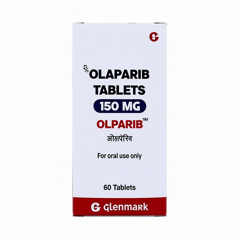 Olparib 150 tablet contains Olaparib 150mg is an oral medication used in the treatment of certain cancers, most notably ovarian, breast, pancreatic, and prostate cancers that have specific genetic mutations (such as BRCA mutations). It belongs to a class of drugs known as PARP inhibitors.